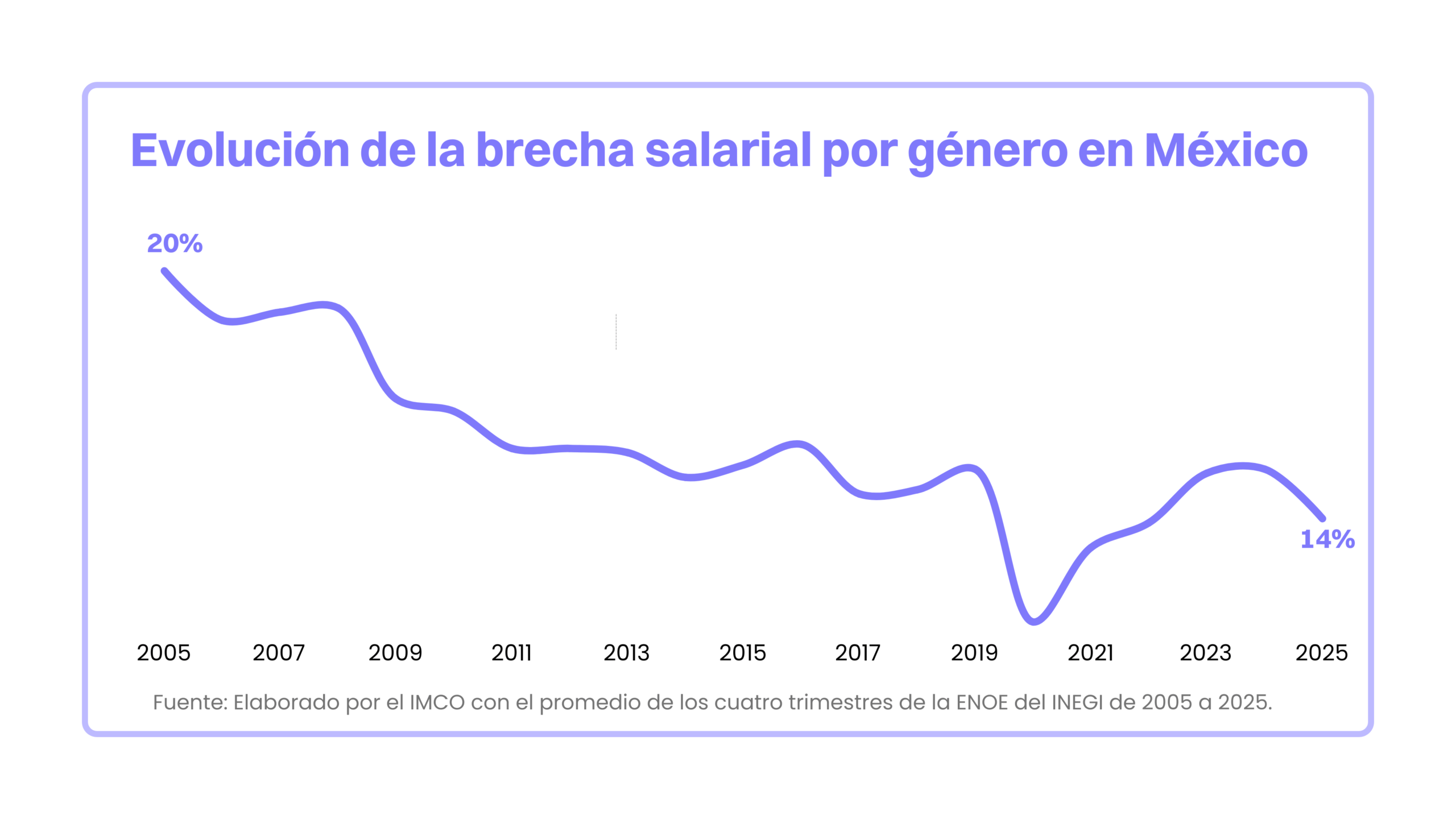 - Prevalece la brecha salarial en 14%, es decir, por cada 100 pesos que gana un hombre, una mujer percibe en promedio 86 pesos.