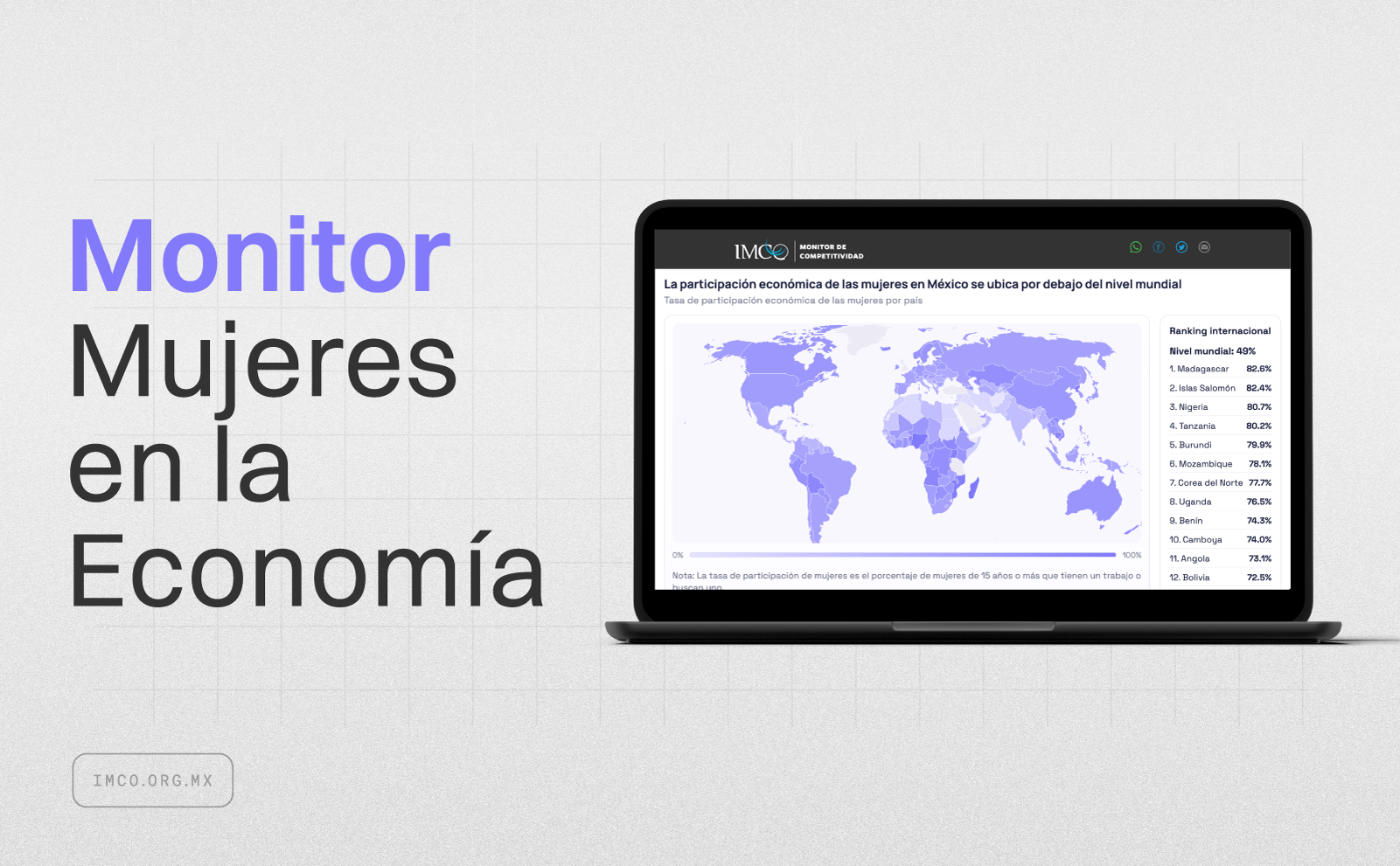 El Instituto Mexicano para la Competitividad (IMCO) presenta el monitor Mujeres en la Economía, una plataforma única que concentra más de 40 indicadores clave sobre la participación económica de las mujeres y sus condiciones laborales a nivel nacional, estatal y para las alcaldías de la Ciudad de México.
